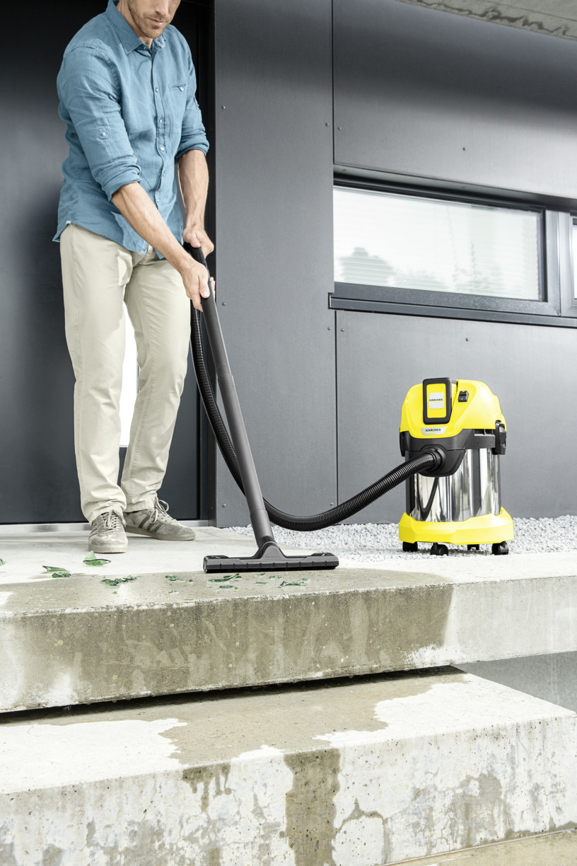 La version Premium de l'aspirateur eau et poussières fonctionnant sur batterie WD 3 Battery basé sur la plateforme de batterie Battery Power 36 V est équipée d'une cuve en acier inoxydable de 17 l. Batterie disponible séparément.