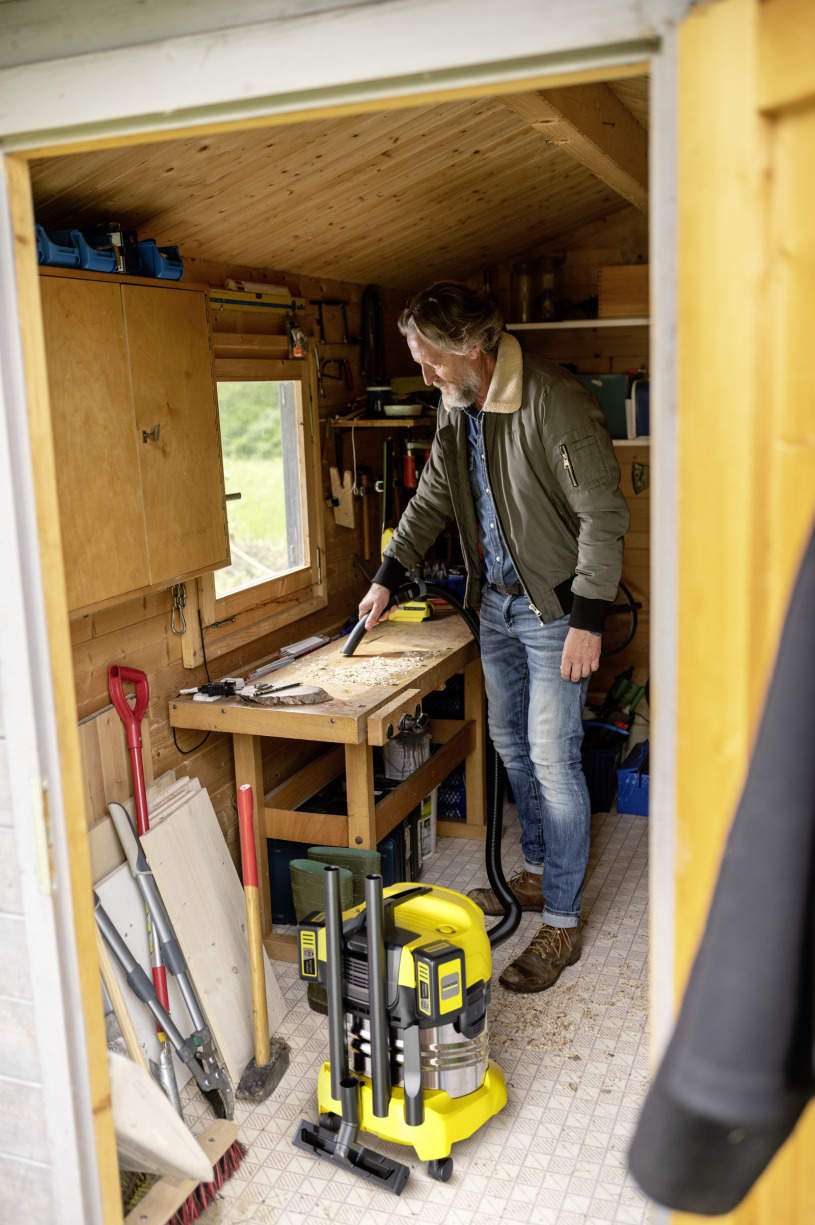 Performant et mobile : le moteur de 36 volts de l'aspirateur eau et poussières sans fil WD 4-18 S Dual est alimenté par 2 batteries de 18 volts pour une puissance d'aspiration impressionnante et une liberté de mouvement maximale pendant l'aspiration. L'aspirateur eau et poussières sans fil fait partie de la plateforme de batterie Kärcher Battery Power 18 V et élimine les saletés humides, fines ou grossières en un tour de main. Cet aspirateur est doté d'une cuve en acier inoxydable de 20 litres robuste, d'un flexible d'aspiration de 2,2 mètres, d'un suceur pour sol à attache, de sachets filtres en non-tissé et d'un filtre plissé plat pratique, adapté à l'aspiration d'eau et de poussières en continu, sans avoir à changer de filtre. Grâce à sa technologie de retrait brevetée, le filtre se démonte en quelques secondes pour être nettoyé, sans contact avec la saleté. Là où l'aspiration n'est pas possible, la fonction de soufflerie montre toute son utilité. Le rangement du flexible d'aspiration est possible avec un encombrement minimal et en toute sécurité en l'accrochant sur la tête de l'appareil. Les tubes et le suceur pour sol peuvent, eux aussi, être entreposés rapidement et facilement sur le pare-chocs. Parmi les autres caractéristiques, on trouve la poignée de transport ergonomique ainsi que le système de verrouillage « Pull & Push » pour une ouverture et une fermeture faciles de la cuve.
