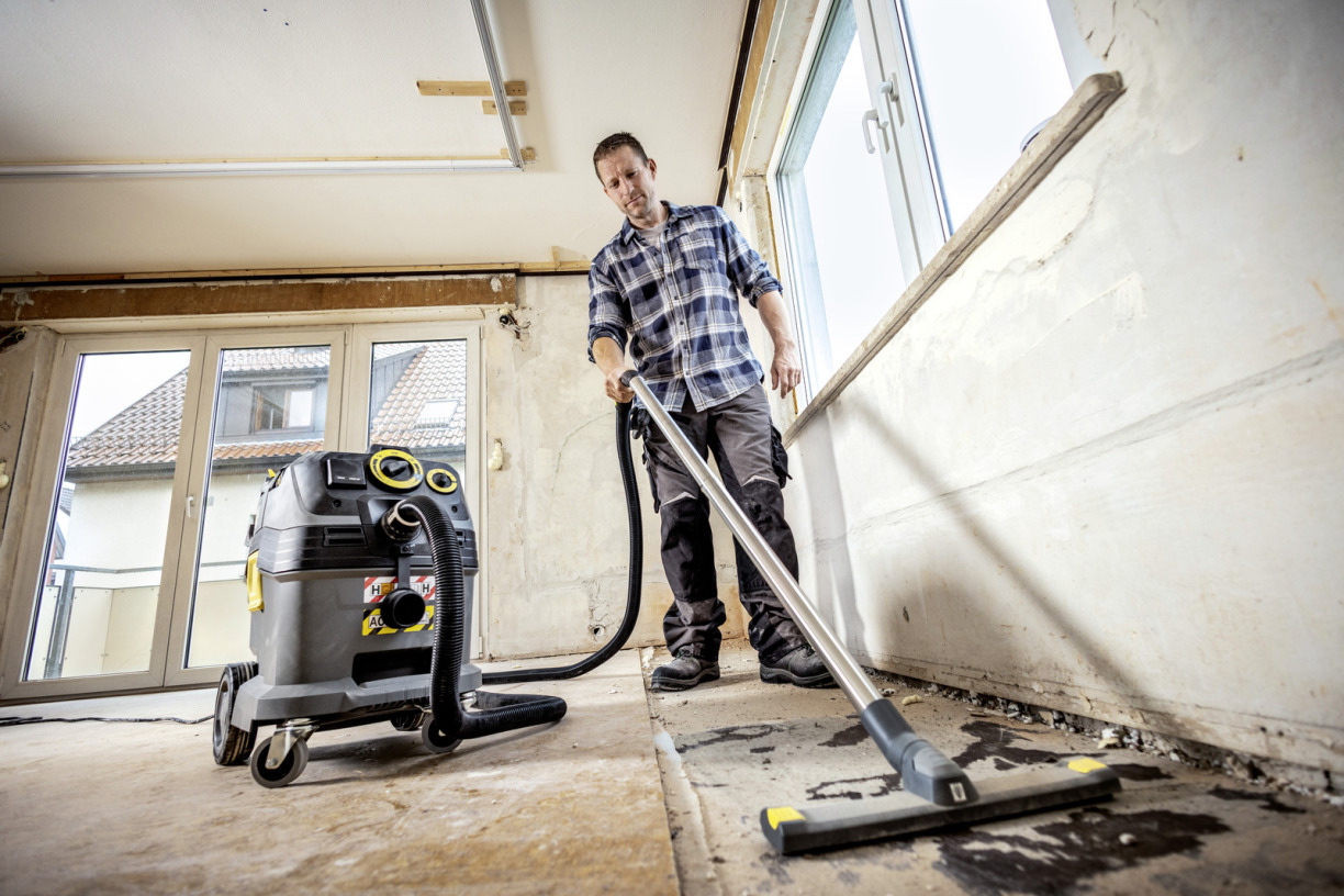 Les travaux de rénovation dans les bâtiments anciens libèrent souvent de l'amiante et d'autres substances nocives et cancérigènes, qui doivent être éliminées immédiatement. Le NT 30/1 Tact Te H ACD est l'aspirateur eau et poussières approprié à cette application. Il a été testé et approuvé selon la nouvelle norme ACD (Appliance for the Pickup of Combustible Dust), conformément à la norme CEI 60335-2-69:2021, pour l'aspiration de poussières inflammables ainsi que pour toutes les poussières de la classe H. Grâce à son design compact et mobile, il se transporte aisément d'un lieu d'utilisation à un autre. Le filtre plissé plat nettoyable Safety/HEPA permet de collecter en toute sécurité les poussières dangereuses avec des sacs filtrants de sécurité ou des sacs d'évacuation en PE ; de grandes quantités de poussières moins dangereuses peuvent être aspirées directement dans le réservoir. Le décolmatage du filtre commandé par un capteur Tact assure une puissance d'aspiration élevée en permanence grâce à un filtre toujours propre. Une prise d'appareil avec démarrage automatique ainsi qu'un système antistatique avec des accessoires conducteurs complètent le concept bien pensé du NT 30/1 Tact Te H ACD.