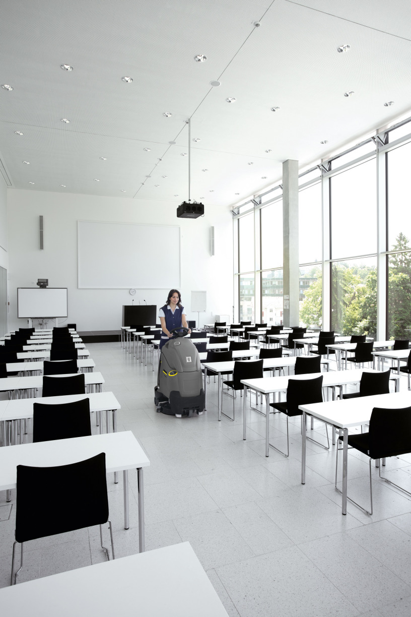 En vraie professionnelle des petites surfaces, la BR 55/40 RS marie avec succès la vitesse de travail et le confort d’une autoportée avec la compacité et la maniabilité d’une autotractée. Avec un rayon de braquage de seulement 1,20 m et une largeur de 68 cm, elle pivote aisément sur elle-même et se faufile aussi bien dans les ascenseurs qu’entre les passages de caisse. Le conducteur dispose d’une vision à 360° de la zone de travail : les obstacles sont contournés facilement et la sécurité est accrue même dans les zones à fort trafic. Economique, la BR 55/40 40 RS est équipée du mode eco!efficiency. Résultat : une qualité de nettoyage irréprochable associée à une réduction de la consommation d’eau, de détergent et d’énergie. Ingénieuse, elle dispose du pré-balayage intégré et d’un système de remplissage du réservoir par raccord rapide. La position debout offre à l’opérateur un grand confort de conduite. Simple d’utilisation, la BR 55/40 RS dispose d’un bouton de commande unique.