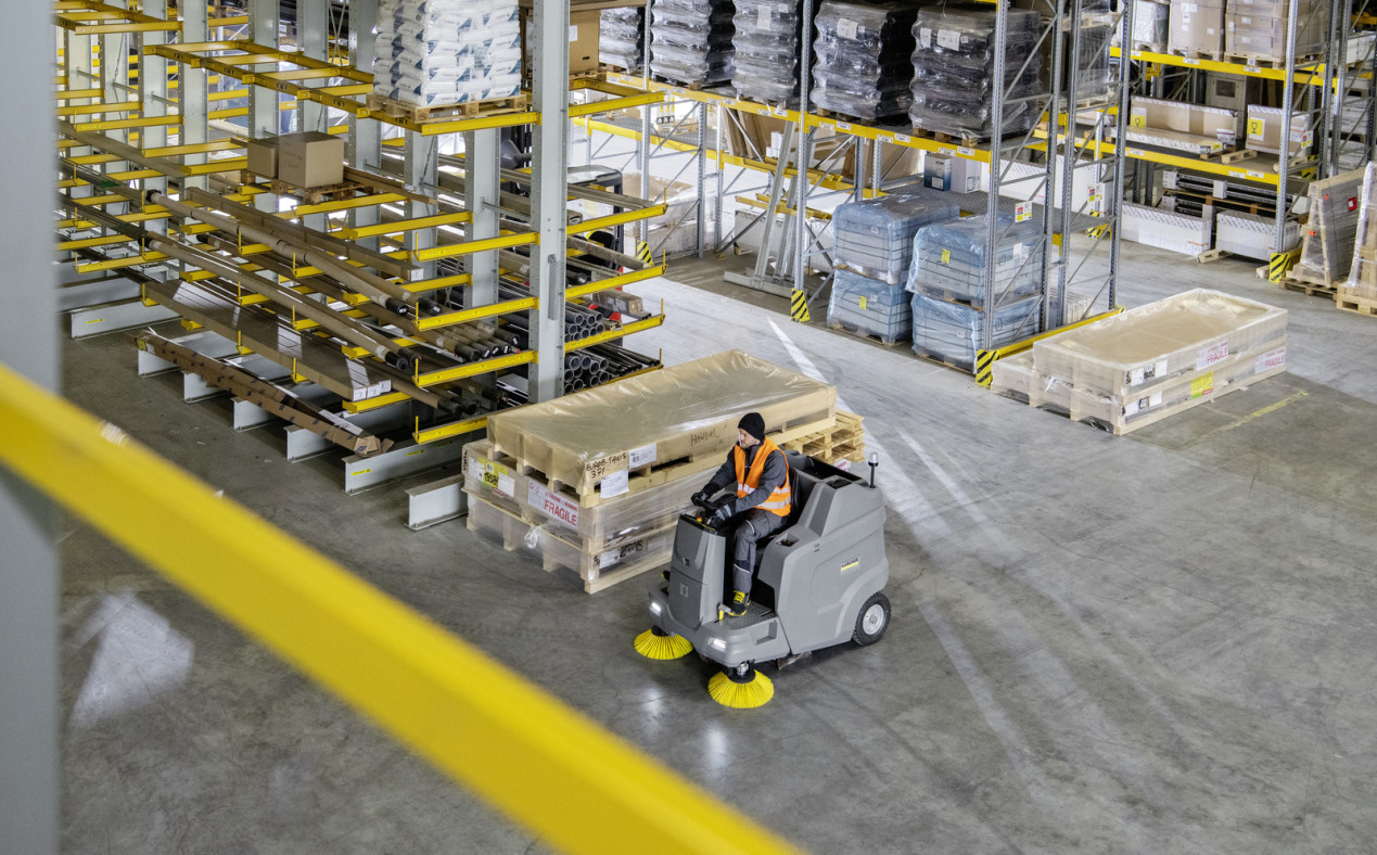 Équipée d'un rouleau-balai à suspension oscillante pour un résultat de balayage optimal, notre balayeuse aspirante autoportée fonctionnant sur batterie et sans émissions KM 100/120 R Bp sait se montrer convaincante lors des nettoyages prolongés, notamment dans les espaces intérieurs très poussiéreux. Une brosse latérale escamotable prévient les dégâts sur la machine et le mobilier tandis que la vitesse de rotation de la brosse latérale peut être ajustée en fonction de la quantité de poussière. Le système à filtre rond éprouvé avec 6 mètres carrés de surface filtrante et décolmatage automatique permet toujours un balayage sans dégagement de poussière, même en cas de quantités de poussière importantes, et le vidage hydraulique en hauteur garantit une élimination pratique des matières collectées dans la grande cuve à déchets. Tous les éléments de commande sont facilement accessibles et disposés de manière très conviviale ; le siège conducteur réglable permet, quant à lui, une très bonne visibilité. Toutes les pièces concernées par la maintenance sont faciles d'accès ; le filtre et le rouleau-balai peuvent en outre être remplacés sans outils. La KM 100/120 R peut également être équipée en option d'un toit de protection ou d'un support d'aspirateur complémentaire en fonction des besoins individuels. La batterie et le chargeur ne sont pas inclus et doivent par conséquent être commandés séparément.