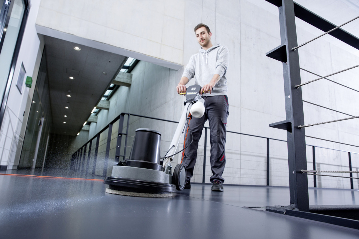 Le pulvérisateur adaptable applique sans peine le détergent et le produit d'entretien. Pour appliquer le détergent, la buse est directement fixée sur la tête de brossage à disques.