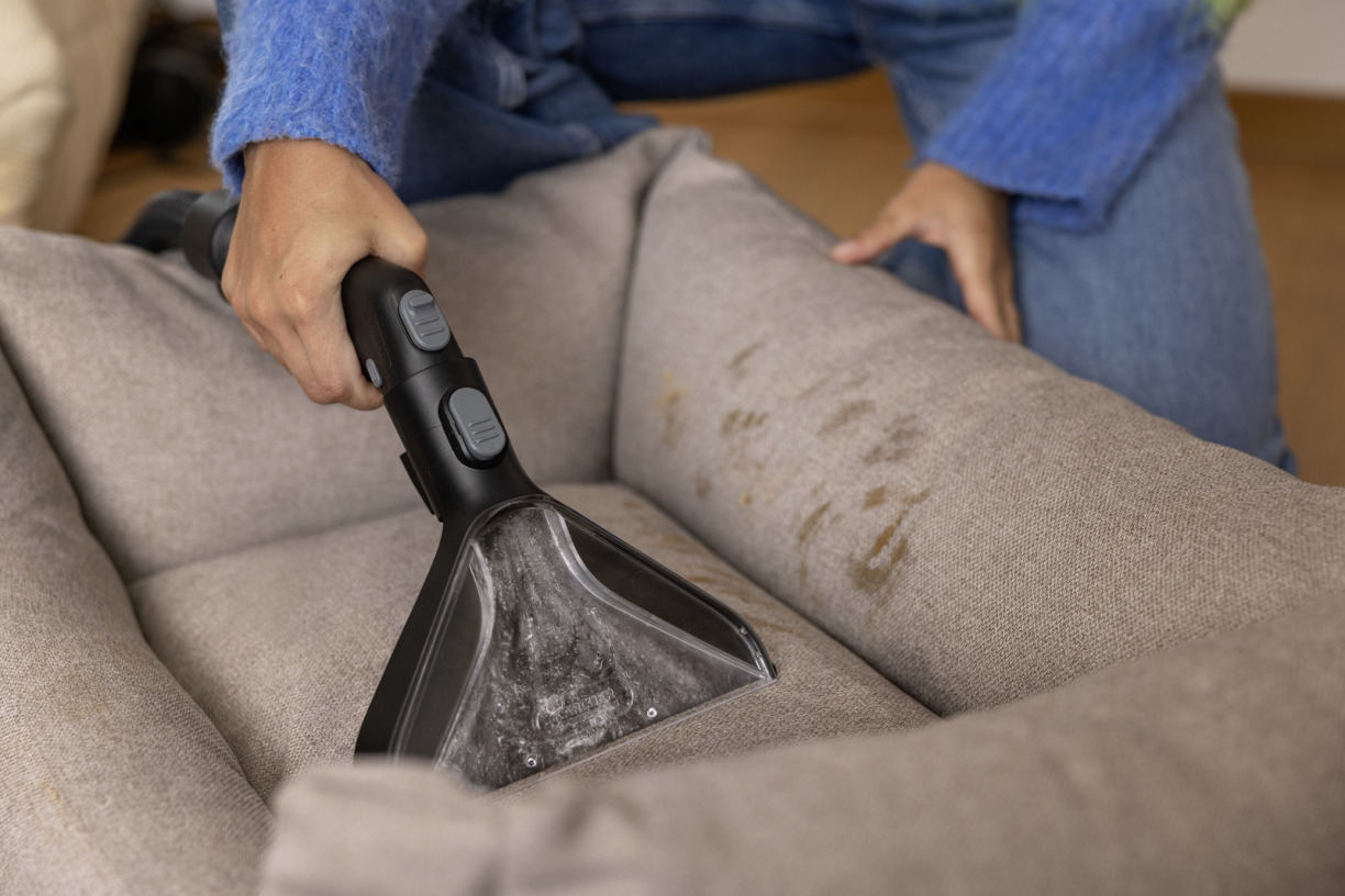 Avec le suceur de lavage 2 en 1 XXL, les tapis de taille moyenne et les capitonnages étendus se nettoient très confortablement et deux fois plus vite qu'avec un suceur de lavage pour meubles classique.