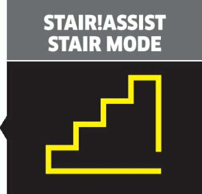 • Nettoyage sans effort des escaliers et des zones étroites dans toutes les positions, même à 90°, grâce au mode escalier de Stair!Assist avec la fonction Auto-Start-Stop désactivée.